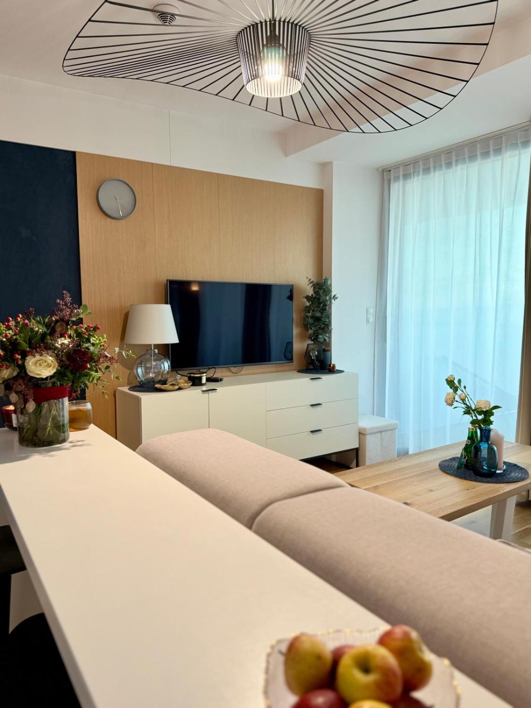 Apartament z 1 sypialnią. Boasting a private entrance, this air-conditioned apartment comes with a kitchenette, 1 bedroom and 1 bathroom with a walk-in shower and a hairdryer. The well-fitted kitchenette has a stovetop, a refrigerator, a dishwasher and kitchenware. Featuring a balcony with sea views, this apartment also features a tea and coffee maker and a flat-screen TV. The unit has 1 bed. Apartament - 2 osobowy. Powierzchnia pokoju ok.: 20 mkw.