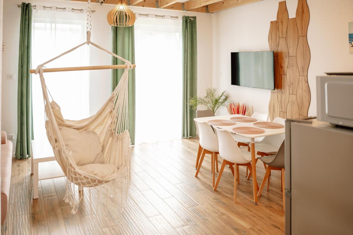 Dom wakacyjny. Boasting a private entrance, this holiday home comes with 1 living room, 2 separate bedrooms and 1 bathroom with a shower and a hairdryer. Guests will find a stovetop, a refrigerator, kitchenware and a microwave in the kitchen. The holiday home also includes a barbecue. Featuring a terrace with garden views, this holiday home also features a tea and coffee maker and a flat-screen TV with streaming services. The unit has 4 beds. Dom wakacyjny - 6 osobowy. Powierzchnia pokoju ok.: 70 mkw.