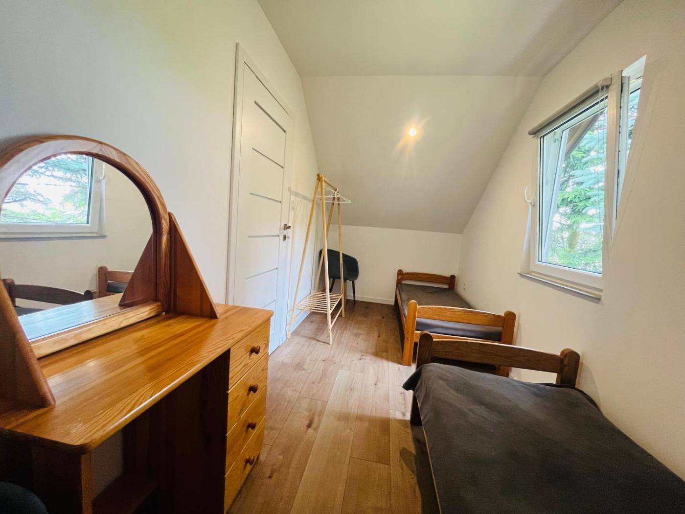 Dom z 2 sypialniami. Boasting a private entrance, this air-conditioned holiday home includes 1 living room, 2 separate bedrooms and 2 bathrooms with a shower and a hairdryer. In the well-fitted kitchenette, guests will find a stovetop, a refrigerator, kitchenware and a microwave. Featuring a terrace with garden views, this holiday home also offers a coffee machine and a flat-screen TV. The unit has 4 beds. Dom wakacyjny - 5 osobowy. Powierzchnia pokoju ok.: 50 mkw. ;