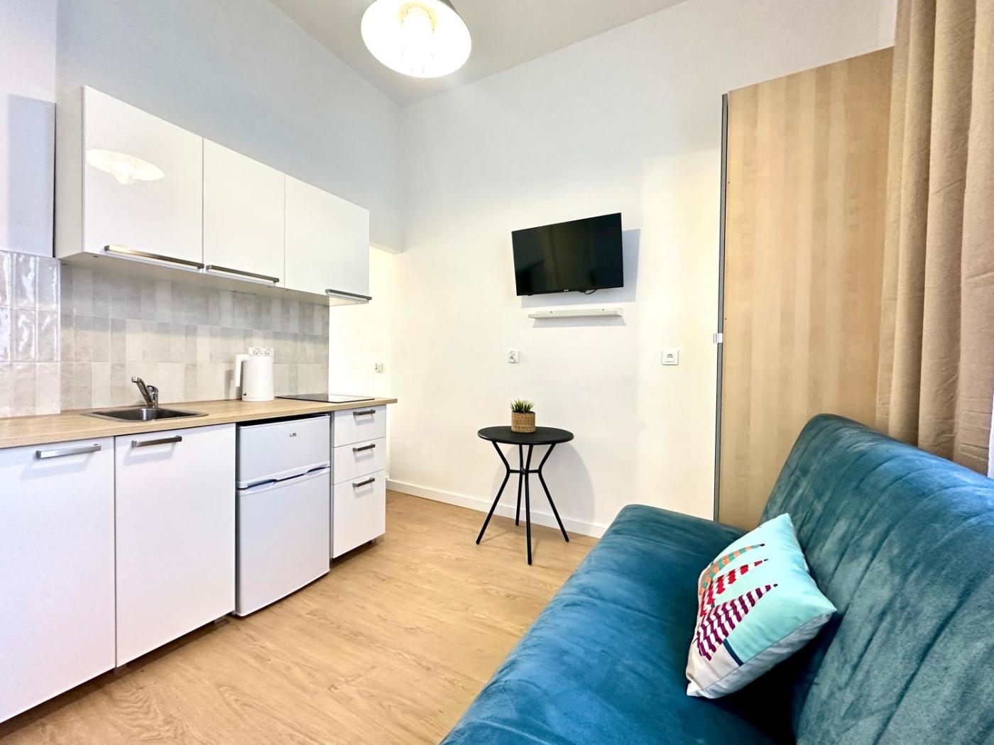 Studio. The studio provides a dining area, a wardrobe, as well as a private bathroom featuring a shower. Meals can be prepared in the kitchenette, which is equipped with a stovetop, a refrigerator, kitchenware and an electric kettle. This studio features parquet floors, heating and a flat-screen TV. The unit offers 2 beds. Studio - 4 osobowy. Powierzchnia pokoju ok.: 23 mkw.