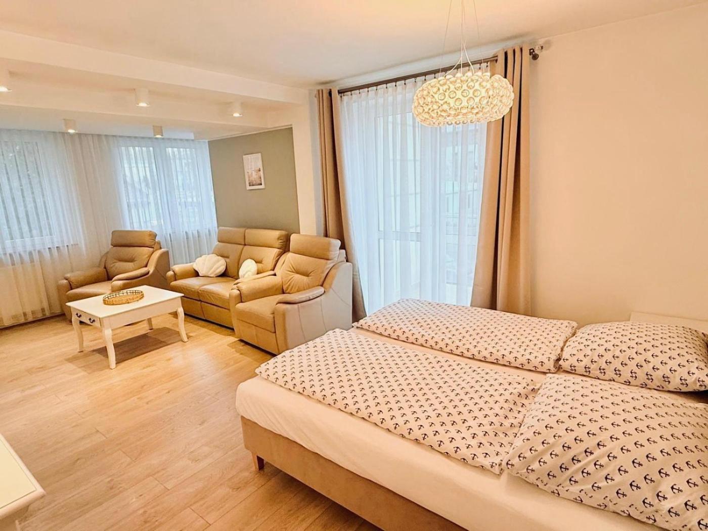Rodzinny apartament typu Studio. The studio offers a seating area, a dining area, a balcony with city views as well as a private bathroom boasting a shower. The unit has 2 beds. Studio - 4 osobowy. Powierzchnia pokoju ok.: 30 mkw. ;